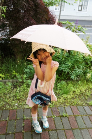 休日なので、ママの好みの可愛いファッションで決めたサク。超キュート